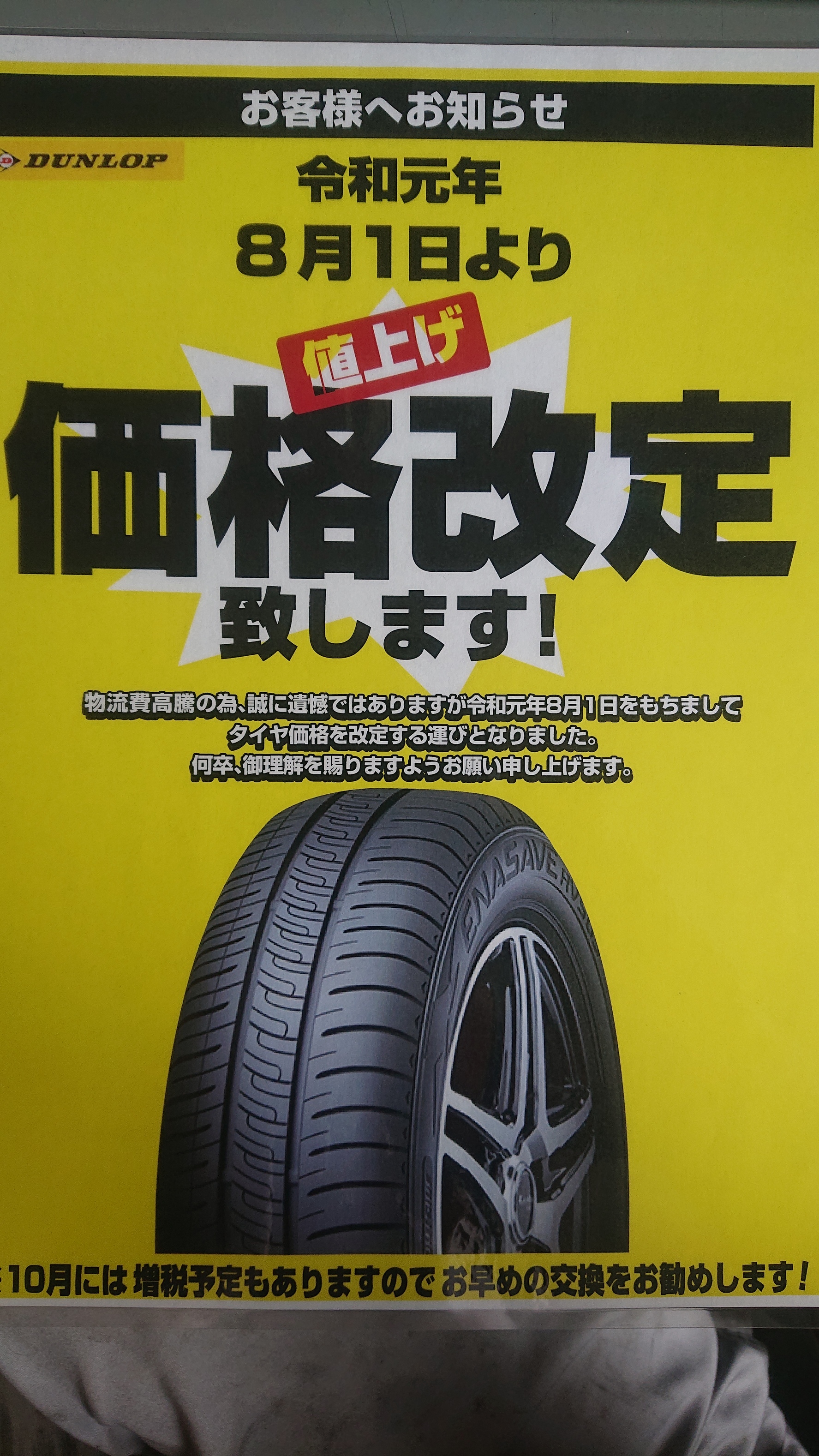残念ながら、各タイヤメーカーより、8月1日より値上げの案内が続々と届いてきております(T_T)