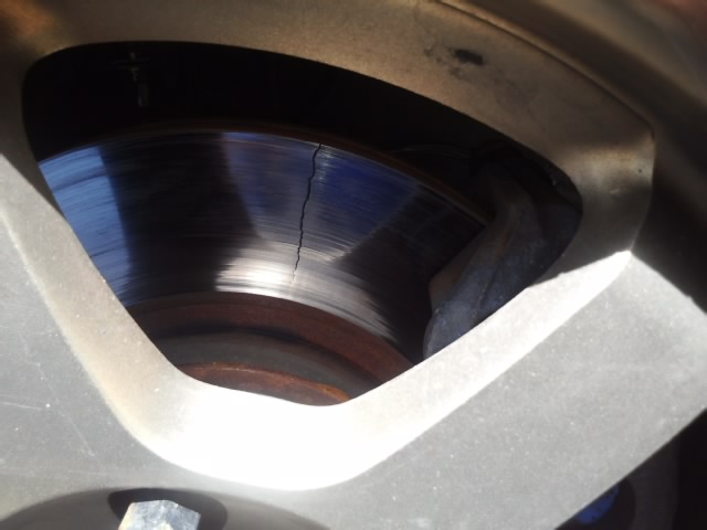 暑い中頑張ってくれたインテ君ですが、 ブレーキが根を上げてしまい、見事にパックリと割れてしまいました