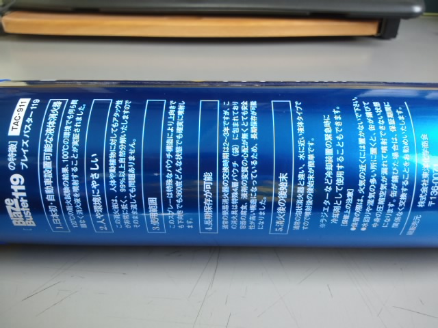液体消火剤で肌に優しく、油火災も消せるし、火の周りにかけると延焼予防にもなるそうです